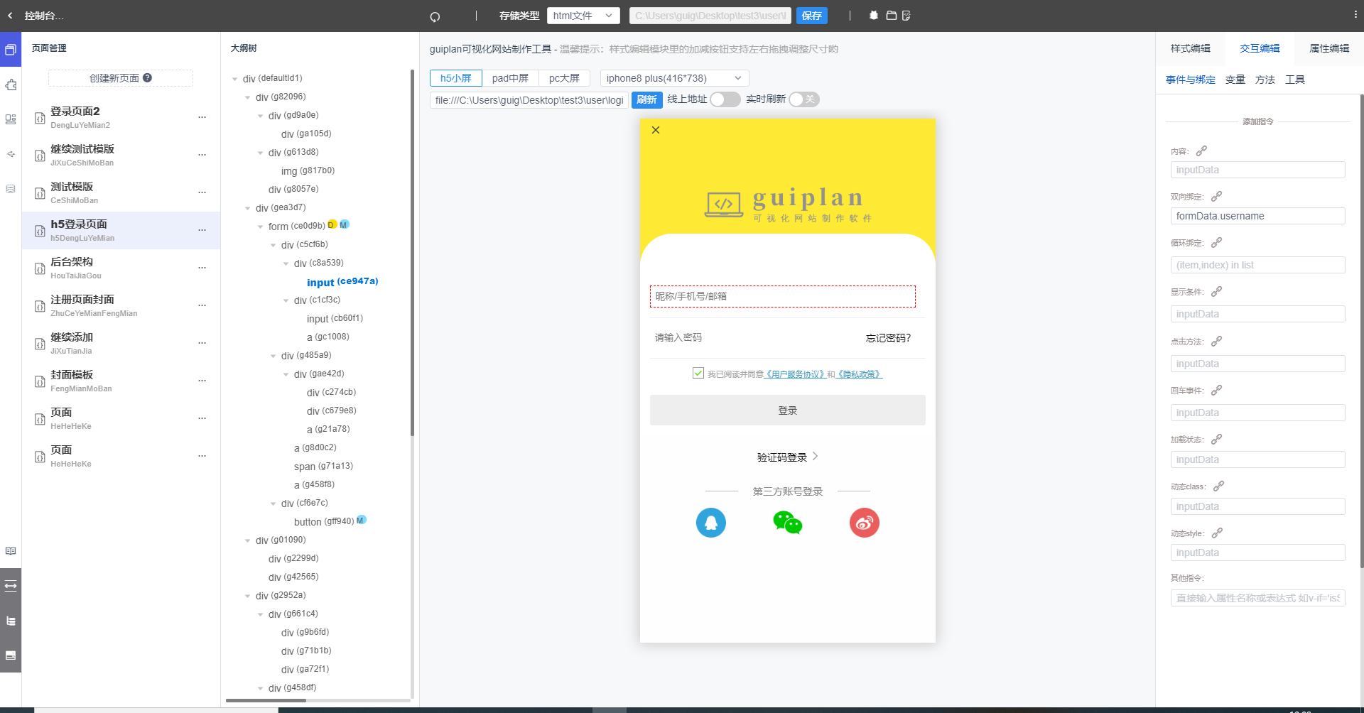 guiplan是一款可视化低代码开发工具,也是一款建站工具,即使不懂代码的小白也能轻松绘制自己的网站。相对于传统低代码工具而言,guiplan支持自适应定制,支持传统主流框架如bootstrap,uniapp,element-ui。还支持将本地代码转换为可视化二次开发。整个搭建过程也是围绕代码的编写而定,生成代码与手写代码几乎无差异。可以很完整的做到适应性,灵活开发。 即使不懂代码的小白也能通过插入模板即可快速搭建一个属于自己的企业网站。